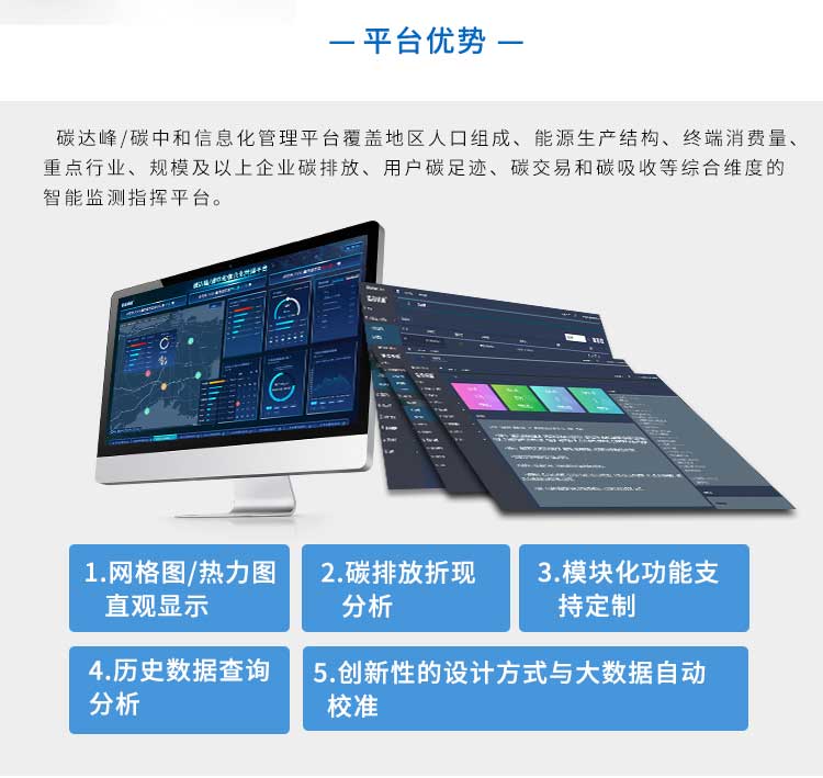 碳達(dá)峰碳中和監(jiān)測管理系統(tǒng)云平臺是覆蓋地區(qū)人口組成、能源生產(chǎn)結(jié)構(gòu)、終端消費(fèi)量、重點(diǎn)行業(yè)、規(guī)模及以上企業(yè)碳排放、用戶碳足跡、碳交易和碳吸收等綜合維度的智能監(jiān)測管理云平臺。碳達(dá)峰碳中和監(jiān)測管理系統(tǒng)云平臺通過碳排放監(jiān)測系統(tǒng)來采集數(shù)據(jù),該系統(tǒng)可全天候,連續(xù)、自動(dòng)地監(jiān)測環(huán)境空氣碳排放和環(huán)境空氣顆粒物的實(shí)時(shí)變化情況,快速準(zhǔn)確的收集、處理監(jiān)測數(shù)據(jù),實(shí)現(xiàn)區(qū)域碳排放數(shù)據(jù)自動(dòng)監(jiān)測。
