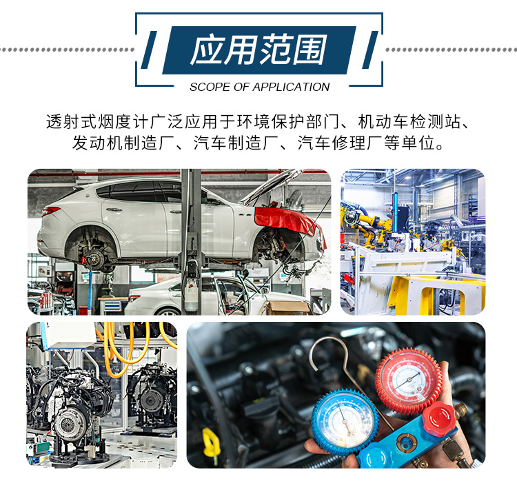 透射式煙度計(jì)可以廣泛應(yīng)用于環(huán)境保護(hù)部門、機(jī)動(dòng)車檢測(cè)站、發(fā)動(dòng)機(jī)制造廠、汽車制造廠、汽車修理廠等單位。