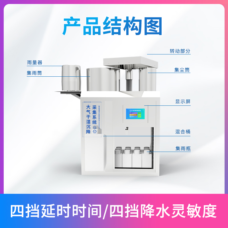 大氣干濕沉降系統(tǒng)是一款可以自動采集降水或降塵的大氣環(huán)境監(jiān)測儀器。大氣干濕沉降系統(tǒng)內(nèi)置光學雨量計,具有高精度光學探頭感應(yīng)識別功能,晴天關(guān)閉集雨筒開啟集塵桶收集沉降,雨天關(guān)閉集塵桶開啟集雨筒收集雨水。大氣干濕沉降檢測儀可在線遠程上傳監(jiān)測數(shù)據(jù),用戶可以通過云平臺遠程實時查看數(shù)據(jù),是一款智能一體化產(chǎn)品。具有很強的抗干擾能力,耐腐蝕性能強。
