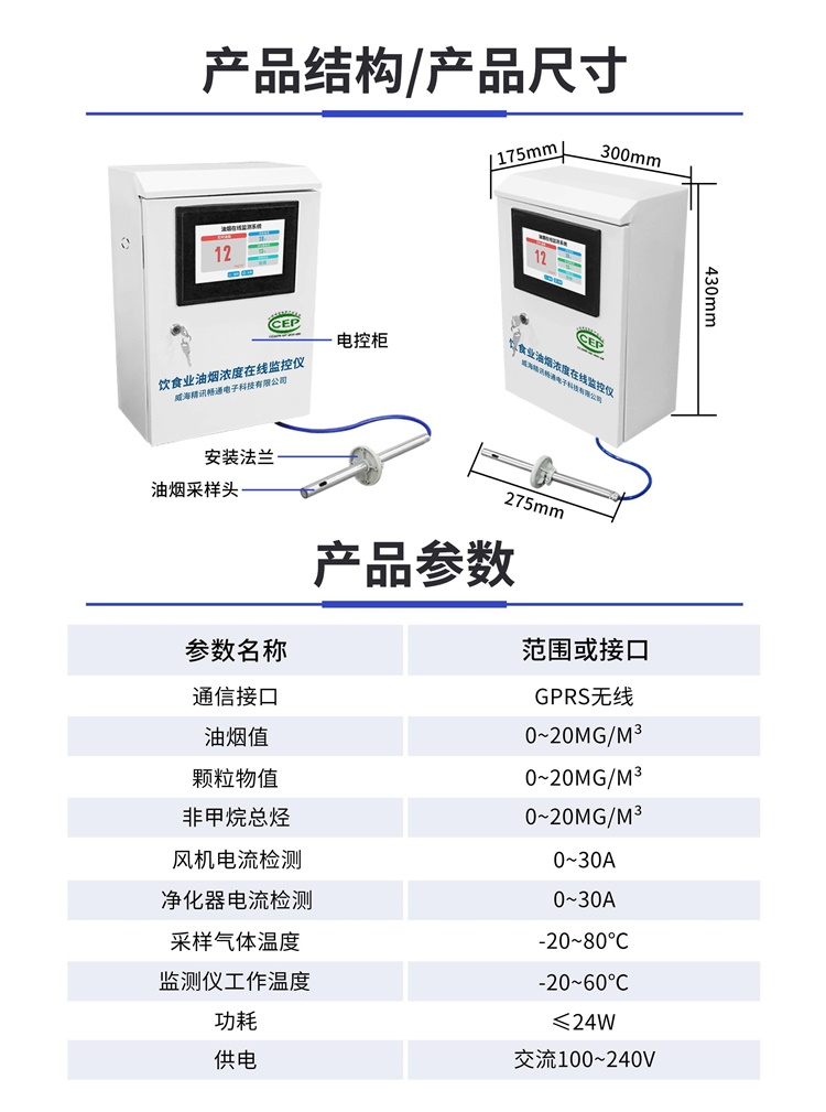 油煙在線(xiàn)監(jiān)測(cè)儀,能夠?qū)Σ蛷N排煙管道的油煙濃度、顆粒物濃度、非甲烷總烴(NMHC)濃度進(jìn)行24小時(shí)不間斷測(cè)量,并上傳我司免費(fèi)的監(jiān)控平臺(tái)或政府監(jiān)控平臺(tái)。為了防止商家凈化器或風(fēng)機(jī)不啟動(dòng),還可通過(guò)電流互感器采集兩路電流信號(hào),監(jiān)控凈化器或風(fēng)機(jī)是否真實(shí)啟動(dòng)。為方案安裝人員操作,整機(jī)采用7寸電容觸摸屏,全中文界面設(shè)置簡(jiǎn)單易懂。主機(jī)帶有1路GPRS(可選4G)通信接口,可插入普通手機(jī)卡或物聯(lián)卡進(jìn)行數(shù)據(jù)上傳,有手機(jī)信號(hào)的地方就可以把數(shù)據(jù)上傳出去。