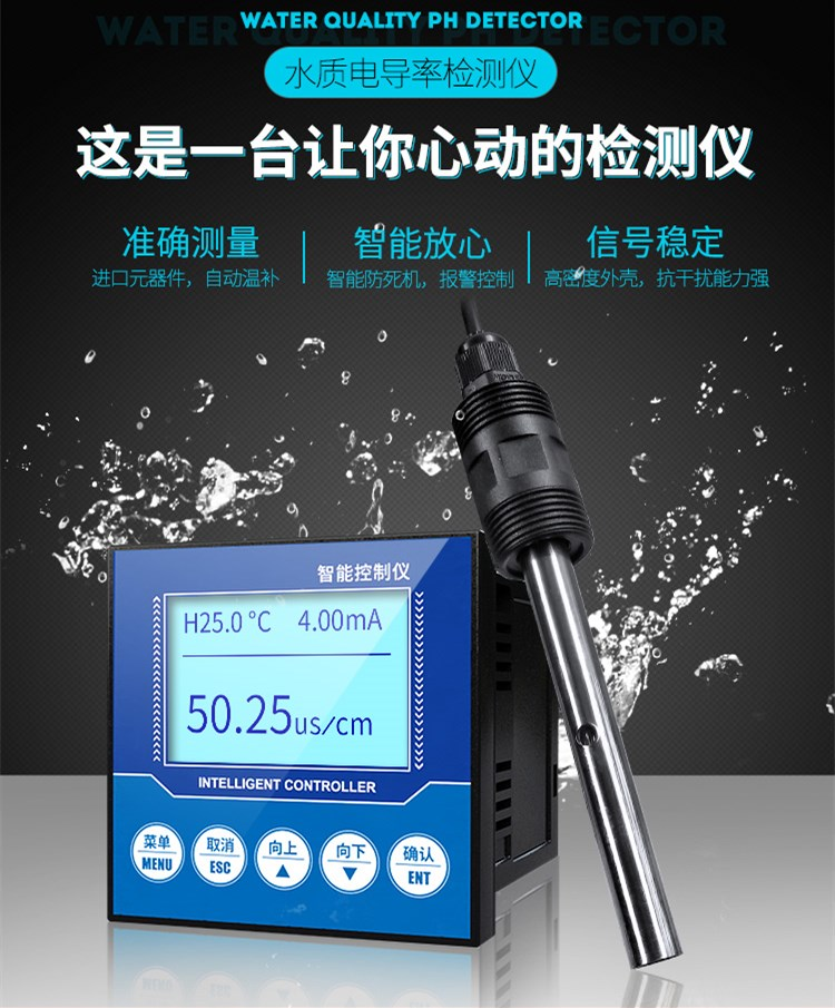 電導(dǎo)率是指水體中傳到電流的能力,純水的電導(dǎo)率很小,當(dāng)水中無機(jī)酸、堿或鹽等化學(xué)物質(zhì)以及重金屬、雜質(zhì)增加時(shí)時(shí),電導(dǎo)率會(huì)增大,因而電導(dǎo)率是反應(yīng)水質(zhì)質(zhì)量的重要指標(biāo)之一。